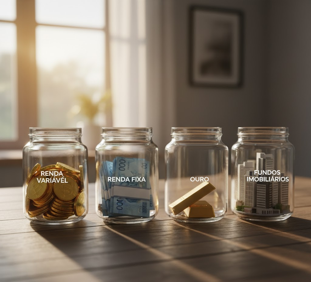A diversificação é o antídoto contra o medo durante essas fases. Não se trata apenas de espalhar o dinheiro entre muitos ativos, mas de escolher investimentos que reagem de forma oposta em momentos de crise.