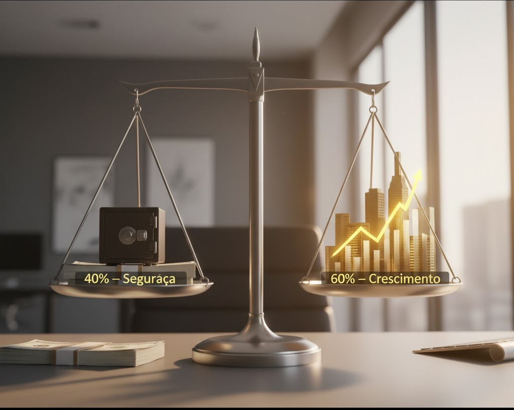 você não precisa escolher entre proteger o que tem e crescer o que possui. A inteligência financeira está em fazer ambos, simultaneamente, com proporções pensadas para o seu estágio de vida e estabilidade profissional.
